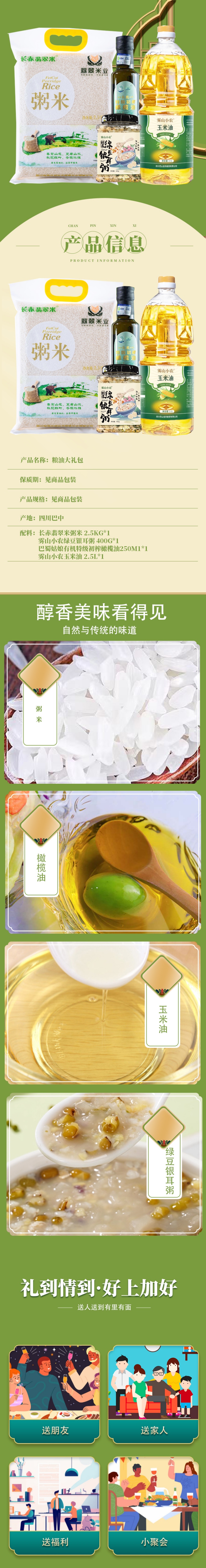 长赤翡翠米粥米 2.5kg 雾山小农绿豆银耳粥 400g 巴蜀姑娘有机特级初榨橄榄油 250ml 雾山小农玉米油 2.5L