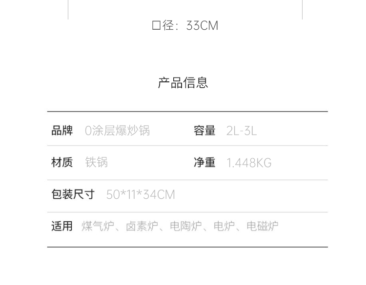 双枪 0涂层爆炒锅 带盖